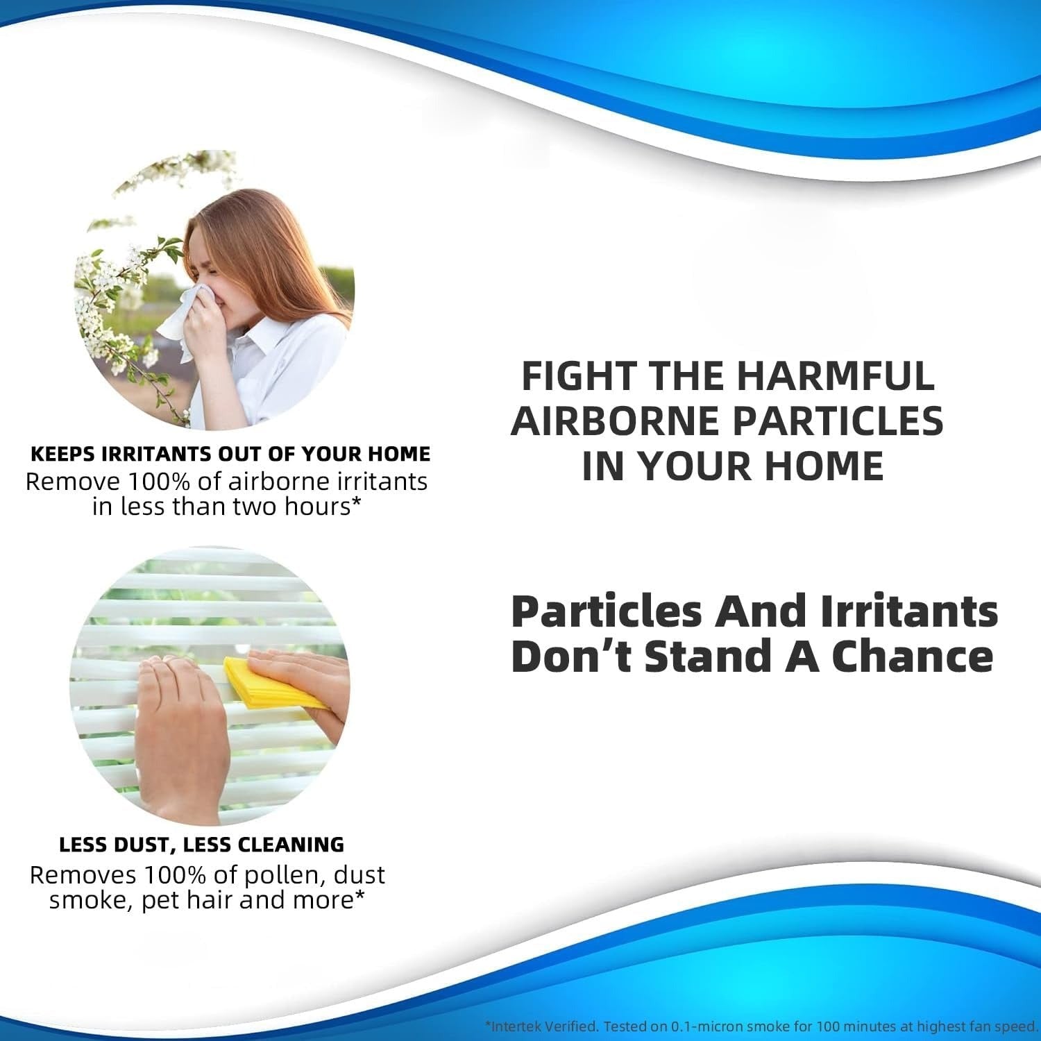 • INTERTEK LAB CERTIFIED โ€“ E500 captures 100% of airborne particle pollutants as small as 0.1 microns including smoke, dust, and pollen. It removes pollen, dust, pet hair, harmful chemicals, and Ozone.
